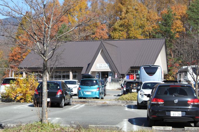 | レークラインに入りました! 落ち葉などで道幅が狭く感じます | 中津川渓谷レストハウスに到着♪ |