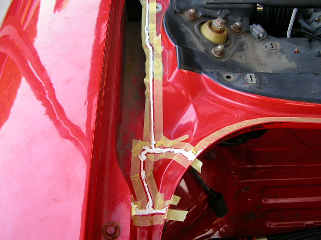 | 侵入口を探してもらうと意外に分かりやすい所に広範囲でクラックが発生しており、 コーキングを侵入口に施してもらいました まず、トランクを剥がして、施工箇所を掃除します |