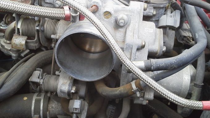 | ブローバイガスで汚れたバタフライやマニホールド内を洗浄 |