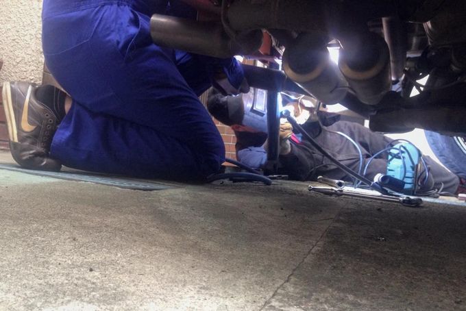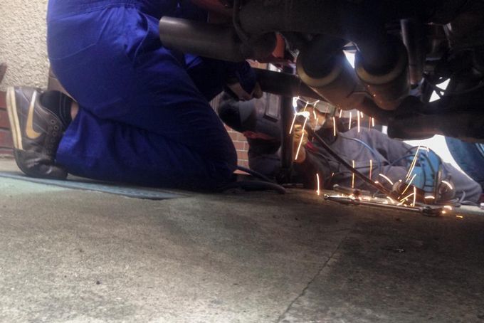今回はマフラーのステーが溶接剥がれを起こしており、その修正を
