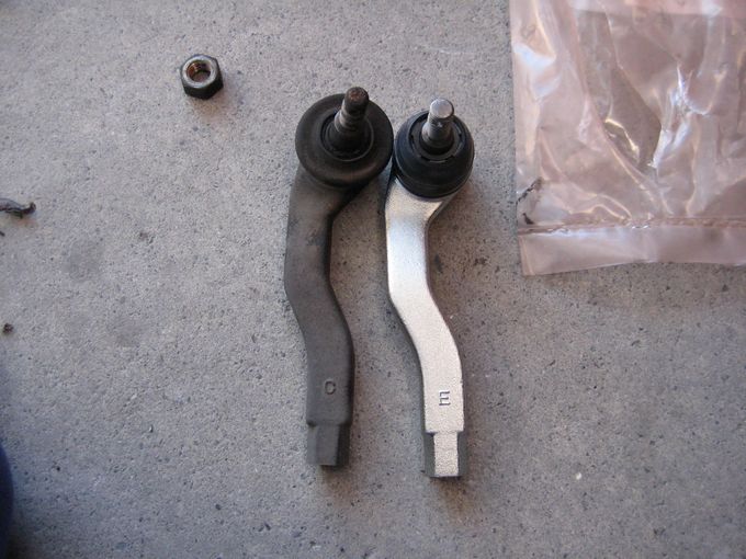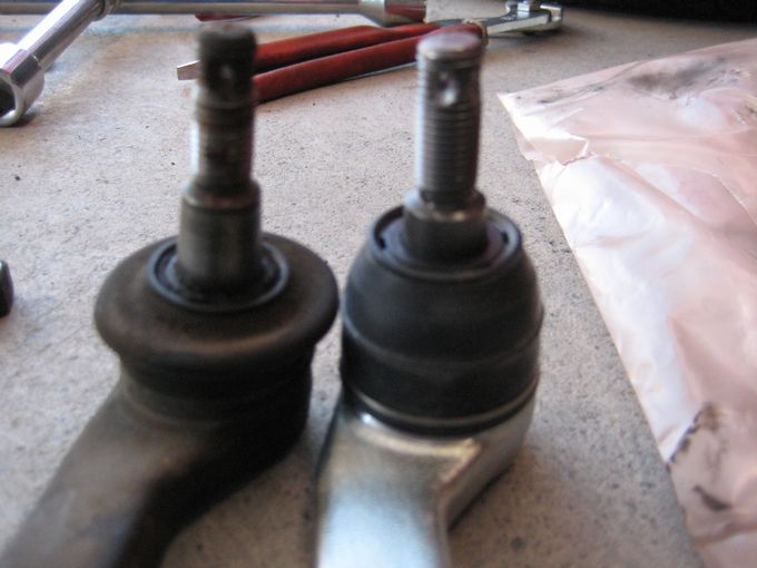 | 左が23年物のタイロッドエンド、右が新品のタイロッドエンド |
