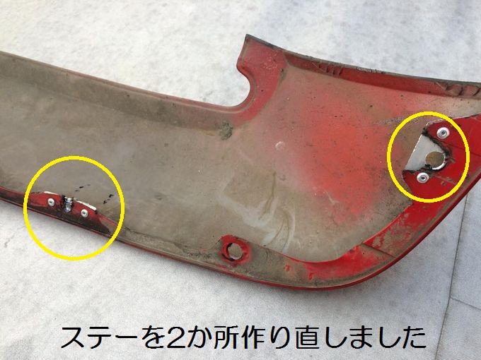リアサイドアンダーカウルが外れかかっているのが前々から気になっていました。 パーツが綺麗に取り付けできていないと、安っぽさを感じますからねぇ。 そこで、金属加工が得意な後輩の☆山ちゃん★にステーを作って頂ける話になり、作業を行いました。