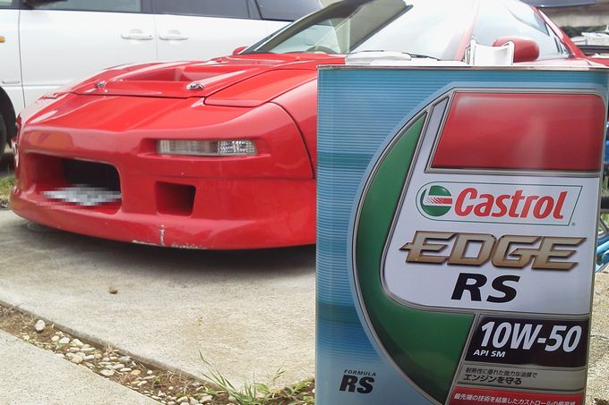 | 今回も使用オイルは、カストロールRS! ホームセンターで4リッター税別3,980円で購入♪ 今回もオイルフィルターを交換するので5リッター注入しました |