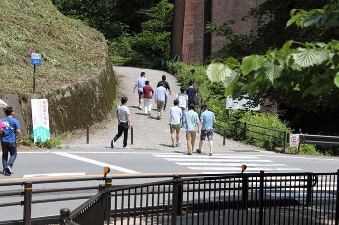 駐車場から歩いてめがね橋を目指します! 初夏の雰囲気で、木々が気持ちいい(´ω`*) | さぁ、麓に着いた! |