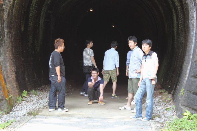 大昔に煉瓦で作ったんだなぁ・・・ | 登り切ったらトンネル前で一休み☆ 冷気がとても気持ちいい(●´ω`●) |