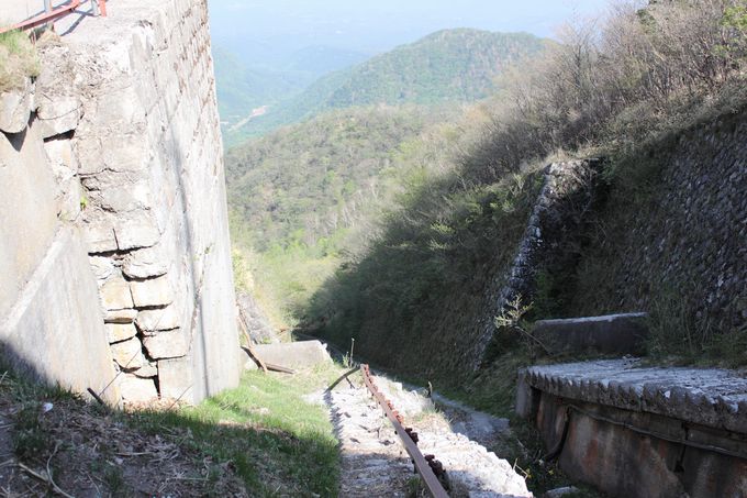 | 一気にここまで走ってきたので、車もしっかり冷却 素晴らしい展望が楽しめます | ケーブルカー跡ですが、スキーのジャンプ台みたいで凄い迫力が・・・(;^ω^) |