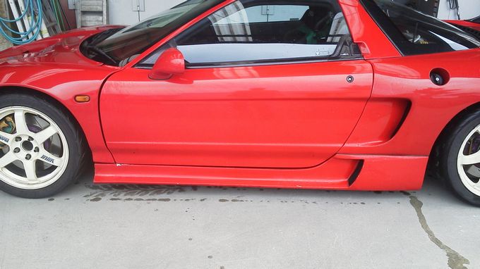 | 今日はサイドステップ修正を少しばかり進めました。 友人の整備工場にお邪魔しての作業です。 前もって割れた個所へのFRPを貼り付けていただいていたので、 削って整形するだけです。 削りだすと結構楽しくて、夢中になってしまいました。 その結果・・・ 一部削りすぎてしまったので、再び貼り直しという結果に・・・(;・∀・) 次回は気を付けます(;^ω^) |