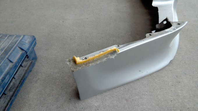 | そしてフロントハーフスポイラーのエッジ部分をそぎ落としたので、落とした部分の整形します | |