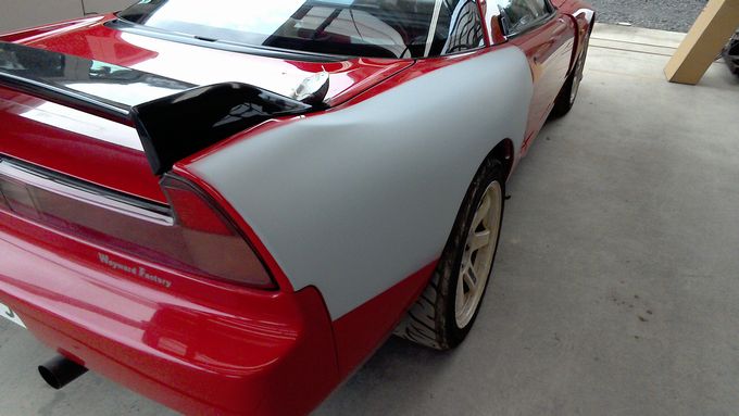 | 今回はサイドステップとハーフスポイラーのサフェーサー研ぎをやっております | |