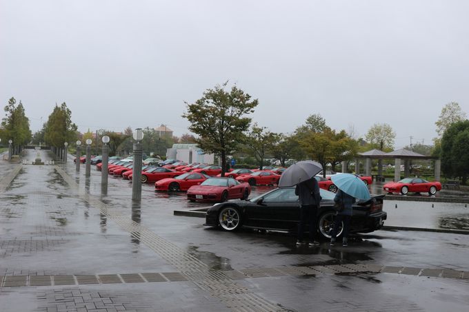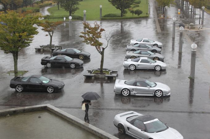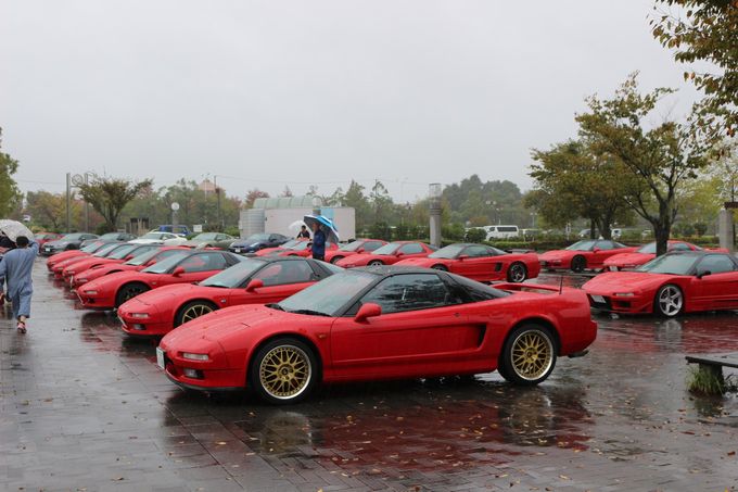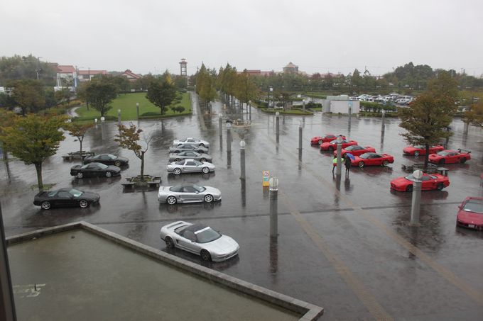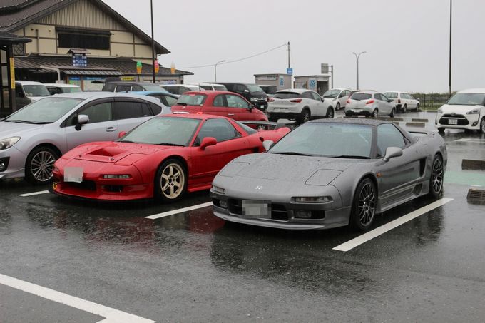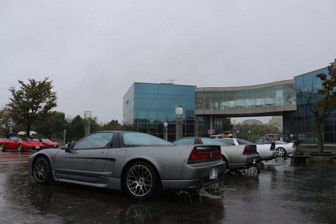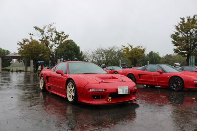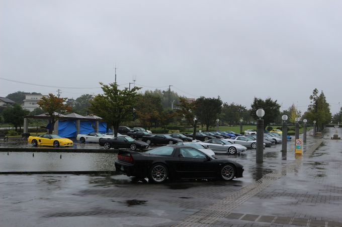 途中、雨が弱まったりと台風の影響が無くなるかな・・・と期待したけど、 やっぱり強くなってきますねぇ・・・(;・∀・) | 気を取り直して、あいち健康の森公園に向かいます! | 現地には1時間半くらいで到着♪ | 現地は残念ながら台風の影響で大雨でしたが、屋内でイベントを開催してくれました | 以下会場で、wako-d2が撮影してくれた写真を雰囲気をお伝えするために一気載せ☆ | 雨でもこれだけのNSXが集まりました。 NSXオーナーだけでも55名来場との事でした | お昼に絶品佐世保バーガーを頂きました。 昨年初めていただきましたが、これはハマりました♪ ある種フリークスの目玉かも( *´艸`) wako-d2も今年初めて食べて感動していました( ^ω^ ) |