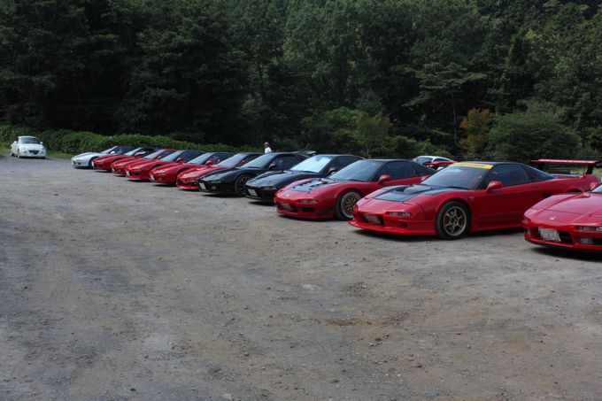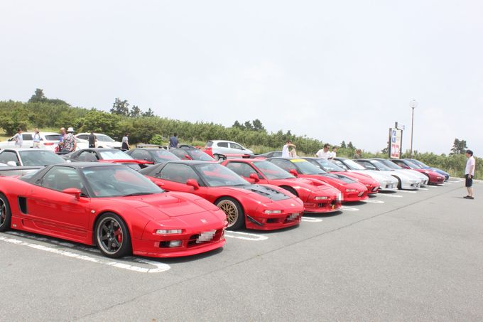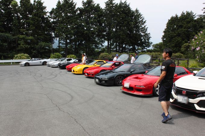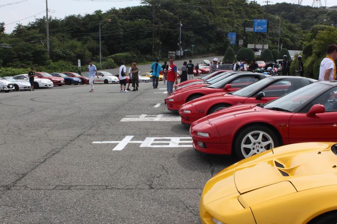 | 集合場所は乙女駐車場に10時集合。 今回も例にもれず、途中までは下道で向かいました。 途中時間が押してきたので、秦野中井から高速を使いましたけどね(;^ω^) | 時間通り到着! いやぁ、展示だけでなく動くNSXがこれだけあるのも凄いです。 |