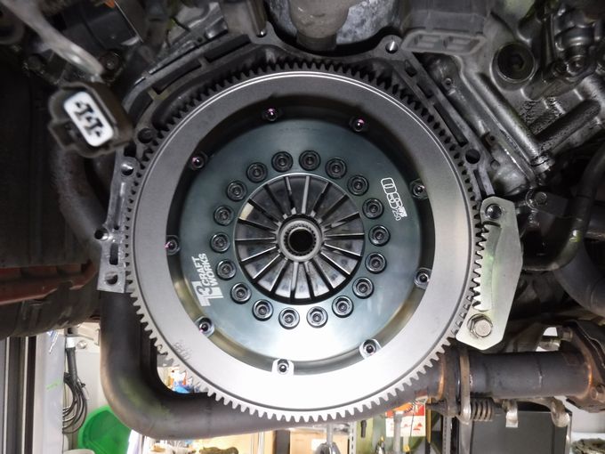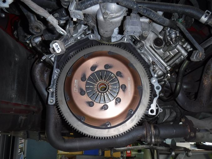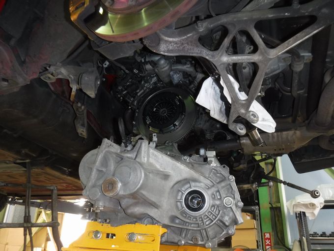 | さぁ、リフトアップされたぞ | ミッションが降りてクラッチが露わに。 KSP製クラッチでした。 |
