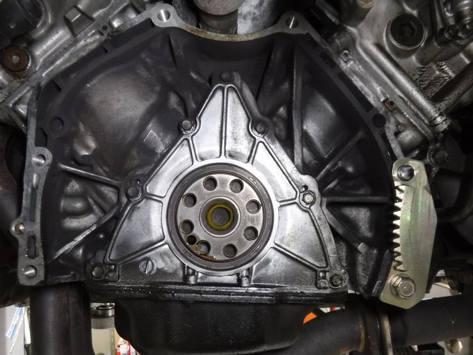 | 綺麗になって、スピードセンサーも取り付いた状態 | クラッチが外されたエンジン側。 クランクシャフトのシールは無事みたいだな(;^ω^) |