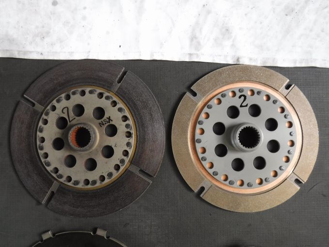 | ばらした感じはこんな様子。 今回は効きが悪くなったとかではなく、部材変更のため。 | 左が旧部品、右が新品ですが、新部品だと部材変更されて 純正ミッションオイルが使えるのが強みです。 純正オイルは安いのでランニングコストが大幅に下げられます♪ |