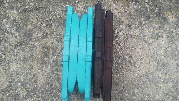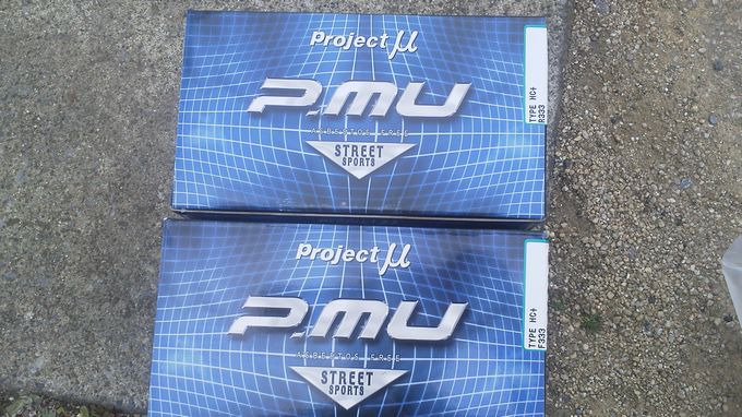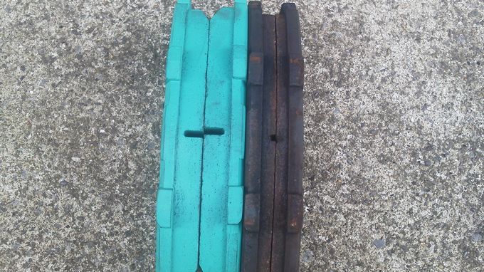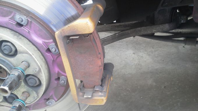 | 今回のパッドもprojectμです。 | リアパッドの新旧比較です。 残量が無かいなぁ、次サーキット走行したらヤバかった。 |