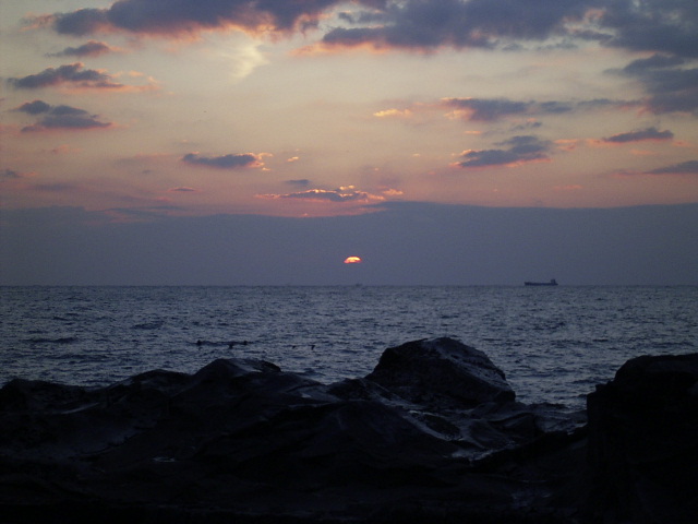 真っ暗の中からだんだん明るくなってきて、太陽が海の向こうから照らしてくる…
